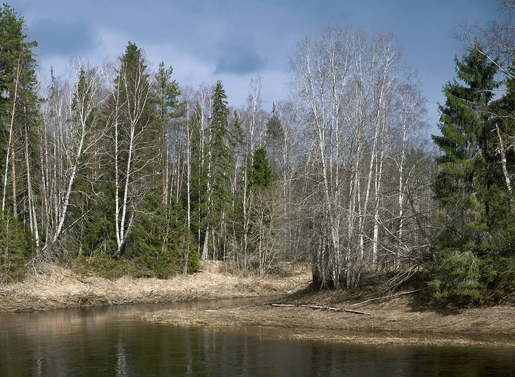 Этот снимок сделан на территории бассейна реки Луги до её последующей радикальной трансформации. На момент съёмки ландшафт сохранял сложную природную и культурную структуру, сформированную длительным сосуществованием водной системы, лесных массивов и человеческого присутствия. Впоследствии эти территории были уничтожены в результате сплошных промышленных вырубок, что делает данный материал архивным свидетельством утраченного пространственного состояния. В культурной перспективе подобные ландшафты могут быть соотнесены с южным, обжитым горизонтом мифологической географии Калевала — не как иллюстрация мифа, а как возможная реальная среда его формирования.