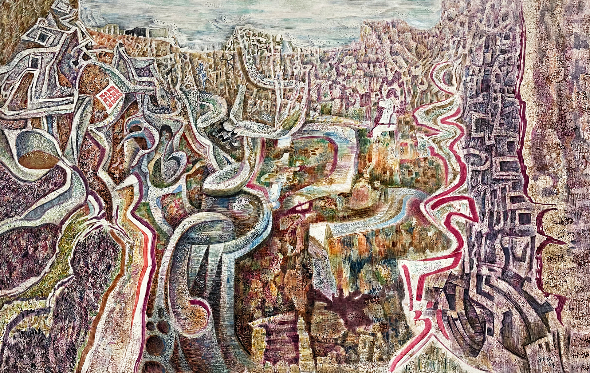 Художник уехал в Париж в раннем возрасте, в начале двадцатых годов XX в. К тому времени в европейском модернизме уже отгремела серия революционных стилей, и это был период синкретизма и принятия. Послевоенный оптимизм, интеллектуальная терпимость, буйная артистическая атмосфера Парижа определили климат, который оказал формирующее влияние на молодого Гику. Его учитель — Константинос Парфенис — посредством своего «линейного, геометрического и методического обучения» подготовил молодого художника к постижению кубизма и геометрической абстракции. Более того, этот созерцательный и образованный художник вскоре открыл те же принципы и в византийском искусстве.