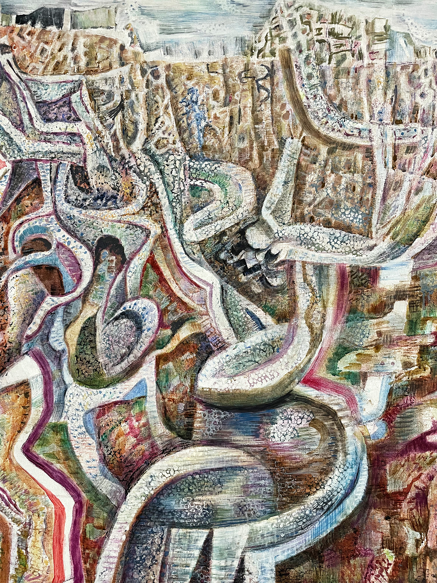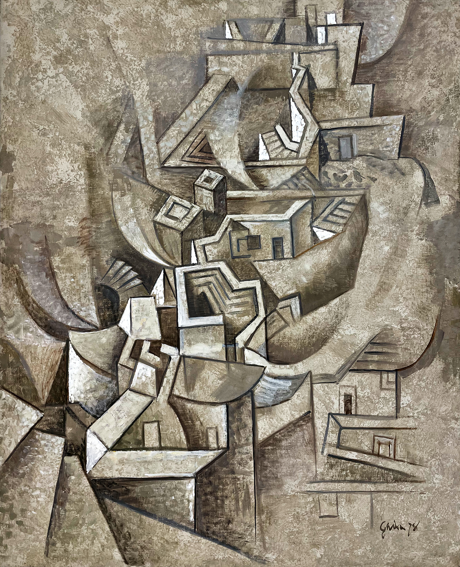 “В Пapиже, кoтopый был выдающимся художественным центром своего времени», — рассказывал Гика, — «меня спонтанно привлекла самая строгая форма искусства — кубизм, или, точнее, его второй период — синтетический кубизм». В то время как аналитический кубизм стремился свести видимое к концептуальным формам, кубизм синтетический вернулся к своим истокам, к чувствам, к новому знакомству с самими вещами, что, в конечном итоге, привело к коллажу. Хацикириакос-Гика воспринял эту науку посредством греческого света и цвета.
