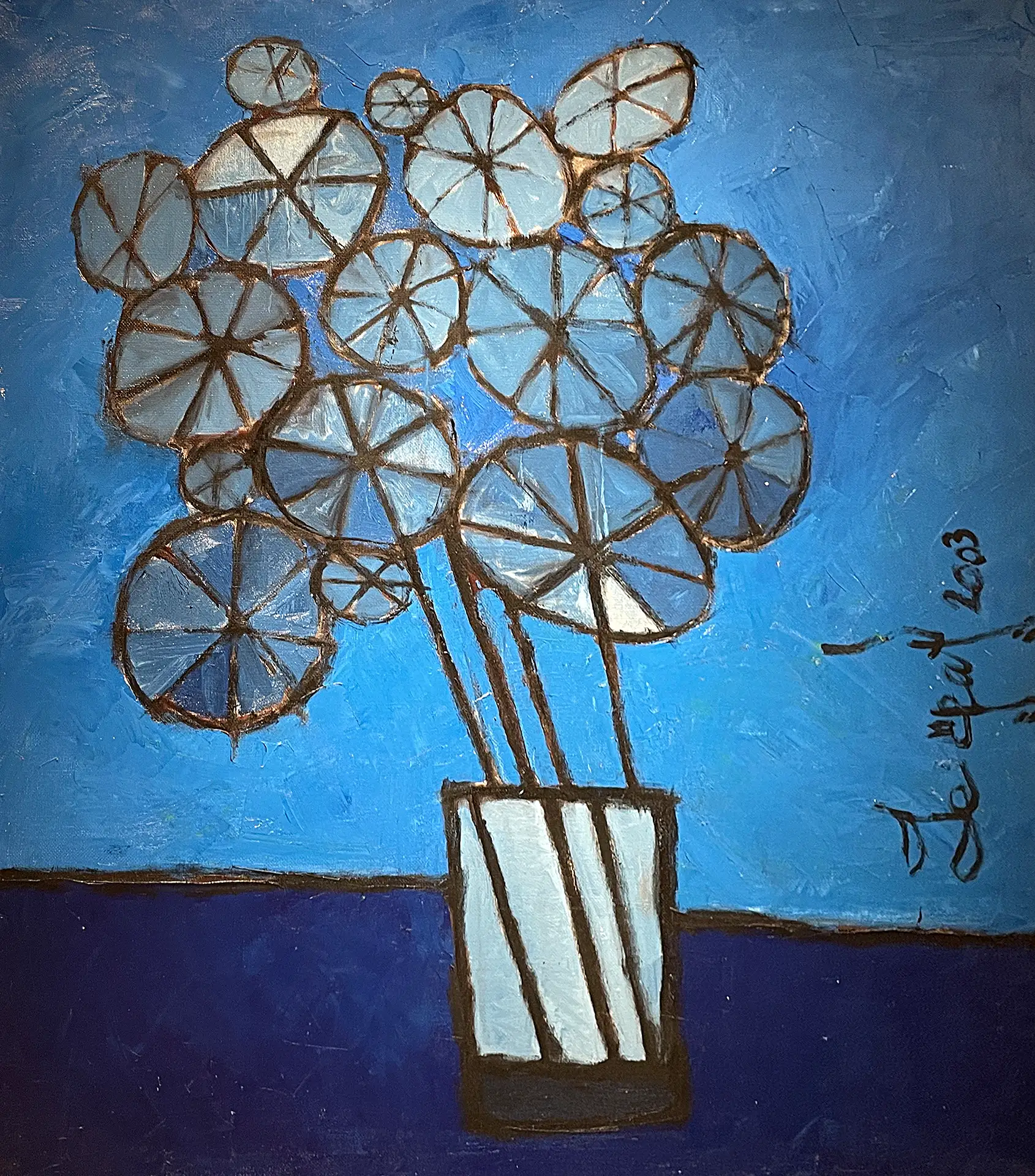 Олег Николаенко не является наивным художником, несмотря на то что подобные ассоциации могут возникнуть при поверхностном знакомстве с его картинами. Примитивистский стиль его работ — результат сознательно наложенной системы ограничений. Эта художественная аскеза позволяет по-новому увидеть и понять знакомые предметы.