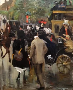 Явившийся из Финляндии художник, мог почувствовать себя втянутым в утомительный, страстный и бурный водоворот событий. Город пульсирует — это и обилие пешеходов, и оживлённые бульвары, и множество магазинчиков, кафе и театров. Живописцы, очарованные ритмом современной жизни, наслаждались свободой. Их завораживала пестрота уличных рекламных щитов, стремительный темп, звуки города. “Атмосфера Парижа” Бэксбакка — это не просто выставка о Париже, но о городе как пережитом опыте — глазами северянина, где создаётся образ города как мифа — города искусства, свободы и авангарда.