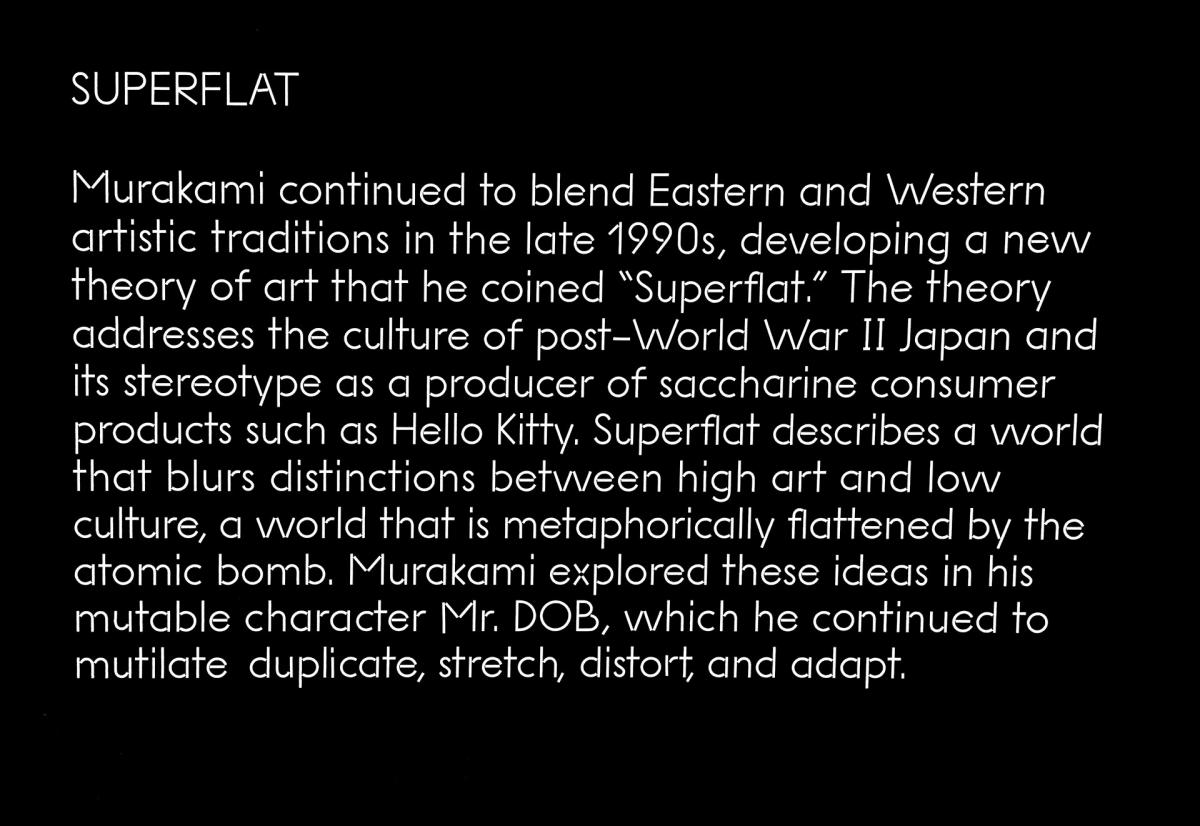 На данной странице опубликованы материалы ретроспективной выставки японского сюрреалиста Такаши Мураками в чикагском музее постмодернизма (июнь 2017 г.). Такаши Мураками приобрел известность в жанре superflat, возникшем в Японии как рефлексия жизни после атомной атаки на Хиросиму и Нагасаки.
