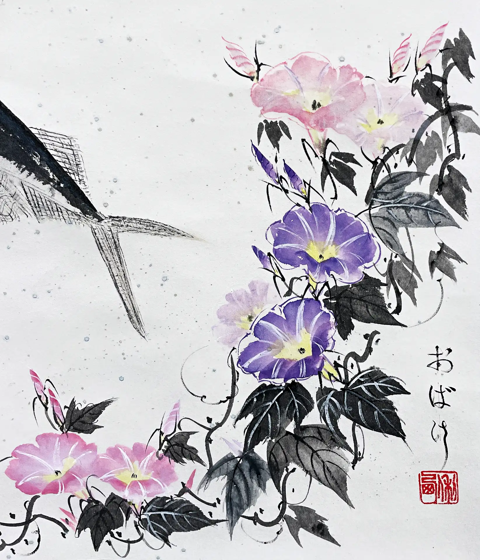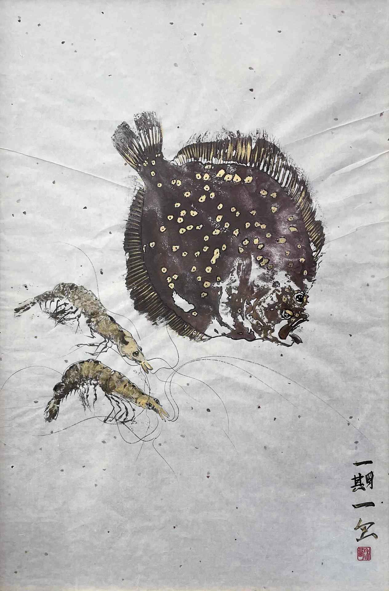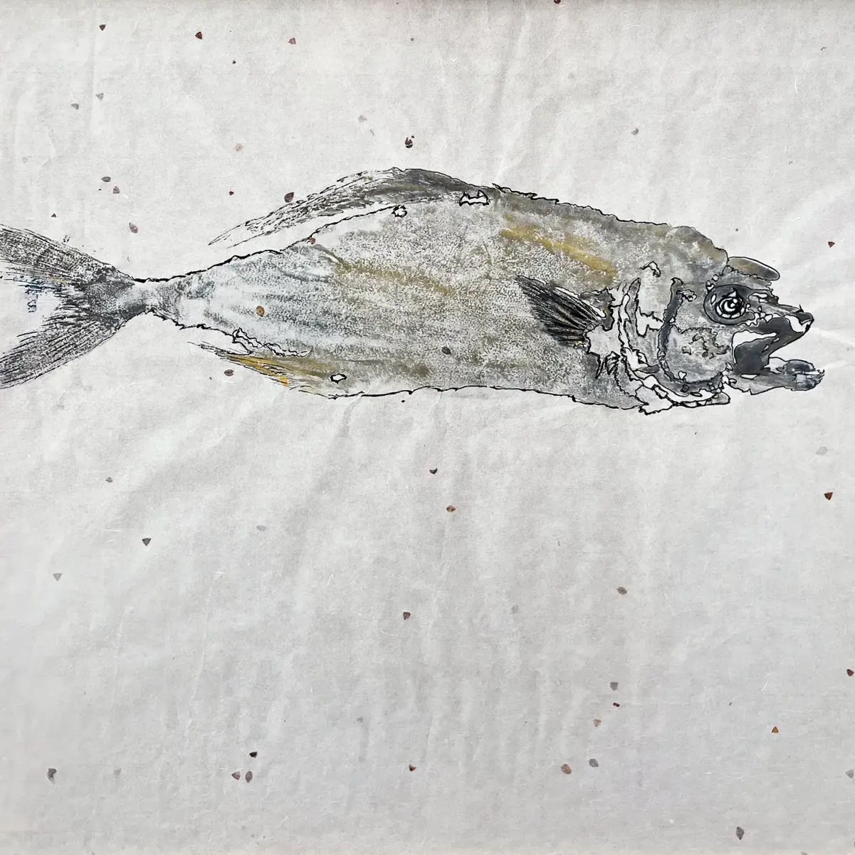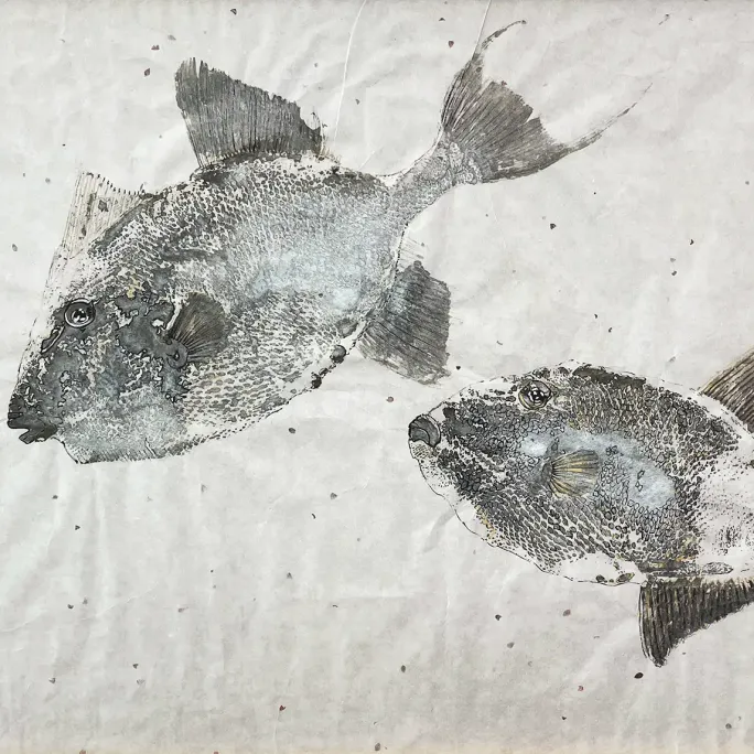 Художница исследует хрупкий баланс между внешним и внутренним пространством. Работы Анны, выполненные в технике sumi‑e, наполнены дыханием воздуха, тишиной, простором. Её рыбы движутся свободно и без усилия — они возникают как следы присутствия, как намёк на то, что свобода возможна даже внутри ограничений.